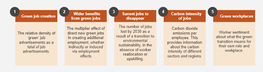 The five Pillars of the Green Jobs Barometer