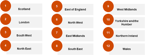 Figure 1: Ranking of UK regions based on the overall barometer index