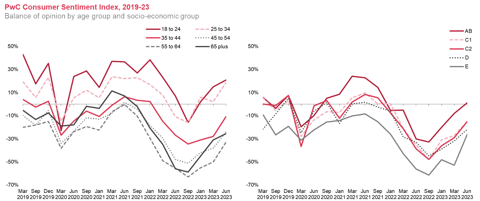 There has been an improvement in sentiment across all demographic groups since the Spring, with the variance between age groups and socio-economic groups narrowing.